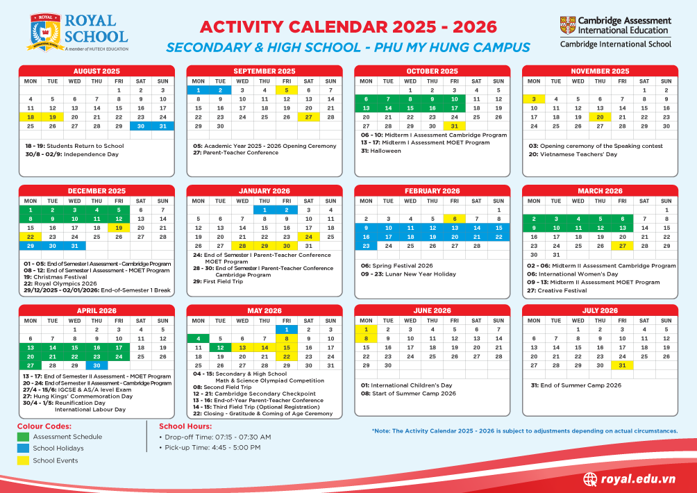 The Secondary & High School Education Program of ROYAL SCHOOL not only equips students with a solid foundation of knowledge and language proficiency, but also creates favorable conditions for them to develop self-study abilities, unlock their creativity, and foster good qualities to become global citizens. In addition, the curriculum also focuses on discovering and fostering the student’s talents while providing suitable career orientations for them to be ready to adapt to the changing world.